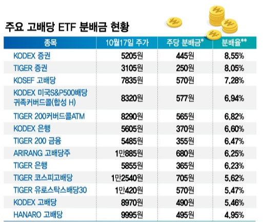 최근 높은 수익률을 기록한 대표적인 고배당 ETF 종목들을 살펴보고, 각 ETF의 특징을 비교해 봅시다.