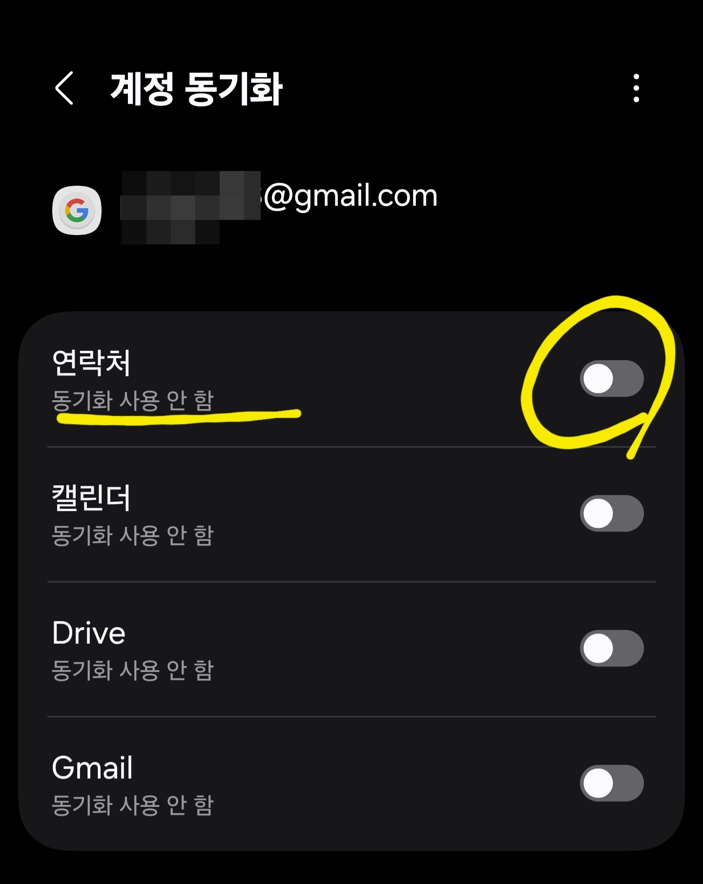 - 경로: 로그인 후 '설정' ➡️ '계정 및 백업' ➡️ '계정 관리' ➡️ 해당 구글 계정 선택 ➡️ '계정 동기화' ➡️ 연락처, 캘린더 등 불필요한 항목을 끄기.