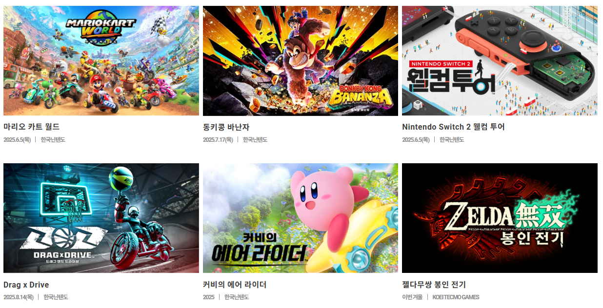 | 마리오 카트 월드 | 2025년 6월 5일 | 스위치2 전용, 신작 마리오 카트 |