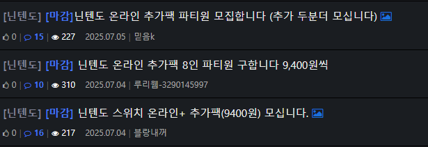- 모집 커뮤니티: 카카오톡 오픈채팅방, 디스코드, 루리웹/클리앙 등 게임 커뮤니티에서 '패밀리플랜 모집글'이 활발하게 올라옵니다.