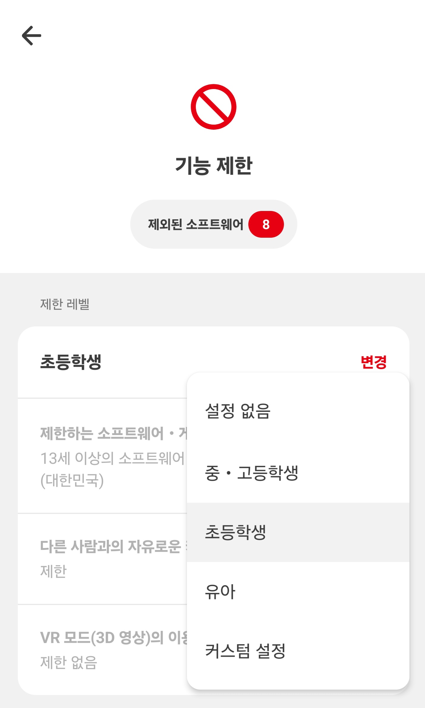 - 개별 게임 차단: 특정 게임은 부모가 직접 차단할 수 있습니다.