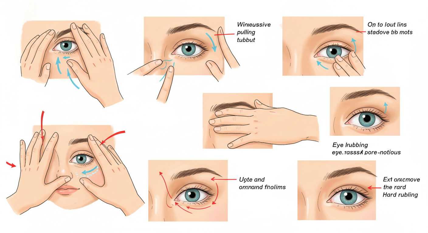 - 눈 밑 연약한 부위: 눈 밑의 연약한 부위를 문지르거나 잡아 늘리는 동작은 피해야 합니다. 눈 주위의 피부는 다른 부위보다 얇고 민감하기 때문에 쉽게 손상될 수 있습니다.