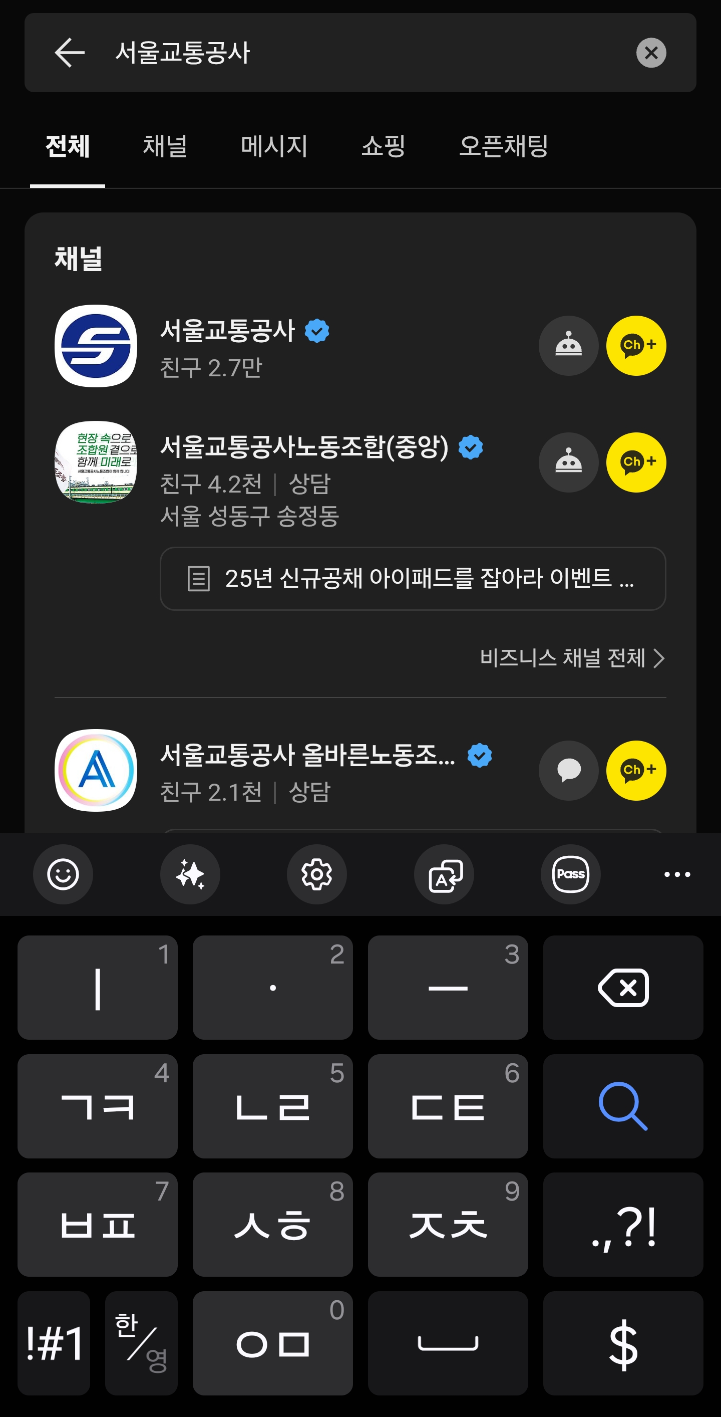 1. 카카오톡 '서울교통공사' 채널 접속하기