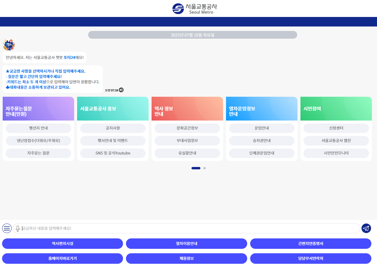 서비스: 서울교통공사 AI 챗봇 '또타24' 🤖