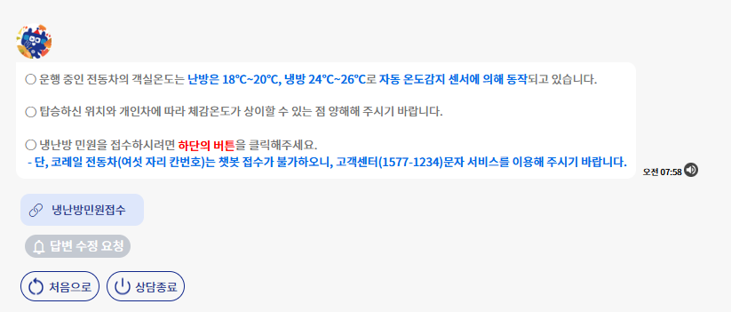 - 높은 처리율: 작년 한 해 공사에 접수된 전체 냉난방 민원의 38%에 달하는 36만 건이 챗봇을 통해 접수되었습니다.
