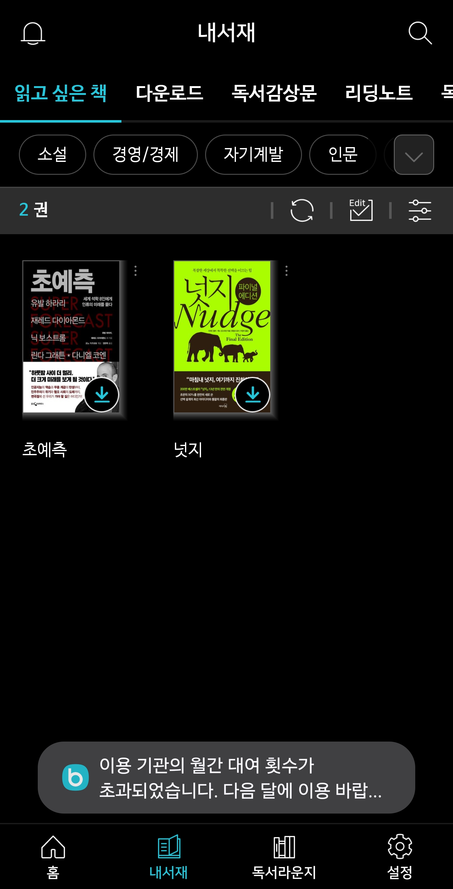 - 공공도서관 전자책은 아무래도 신간 확보에 시간이 걸리거나 대기자가 많을 수 있습니다.