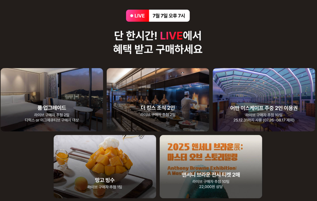 🚀 라이브 한정 '파격 혜택' 놓치지 마세요! (7월 7일 오후 7시)