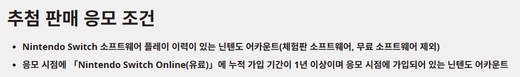• 응모처: 닌텐도 스토어, 11번가, 쿠팡, 이마트몰