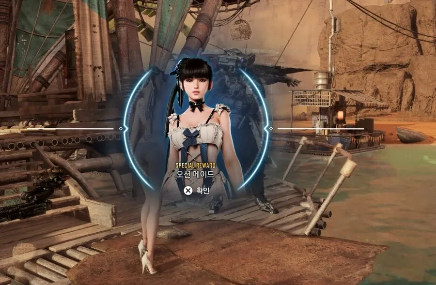 총 25종의 물고기 도감을 모두 채우면, 다시 오아시스의 NPC 클라이드에게 돌아가 대화하세요. 클라이드가 "수고했다"며 '오션 메이드(Ocean Maid)' 나노슈트를 보상으로 줍니다! 👗