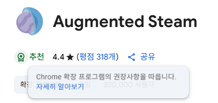 - 공식 경로에서만 설치: 반드시 크롬 웹 스토어의 공식 Augmented Steam을 설치하세요.