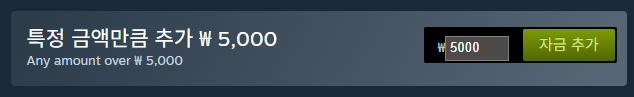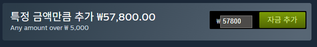 결제 방법 선택 화면에서 'Steam 지갑'을 선택하고, 지갑 잔액이 부족하다면 충전 금액을 선택하는 화면이 나타납니다. 여기서 Augmented Steam이 활성화되어 있다면, 기존의 정액 금액(5,000원, 10,000원 등) 아래에 '특정 금액만큼 추가 (Add specific amount)'와 같은 새로운 입력란이 보일 것입니다. 💡