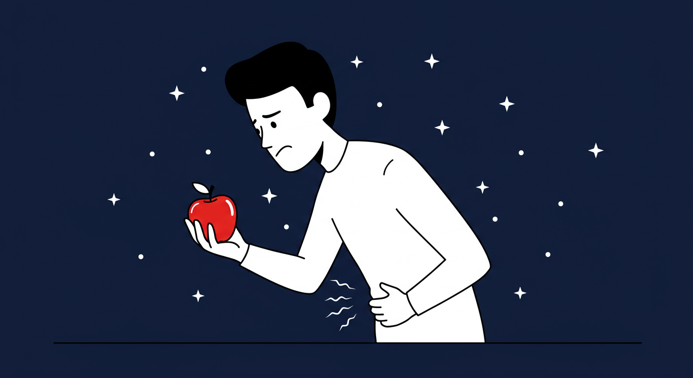 - 야식 후 사과: 특히 야식을 먹은 후 후식으로 사과를 먹는 것은 '독'이 될 수 있습니다. 이미 과식한 상태에서 추가적인 당분 섭취는 혈당과 소화에 큰 부담을 줍니다.