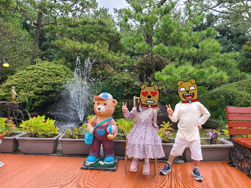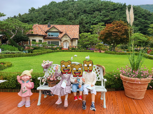 카페 외관부터 마치 유럽의 시골 마을에 온 듯한 분위기를 줍니다. 하얀색 외벽, 둥근 아치형 창문, 목재 루프와 벽돌로 꾸며진 곳들이 사진 찍기 완벽한 배경이에요. 또한 정원에는 빈티지 자동차, 곰인형 포토존, 풍차 구조물, 산책로에 설치된 나무 의자 등 다양한 테마로 꾸며져 있어, 어느 각도에서 찍어도 인생샷 건질 수 있습니다.