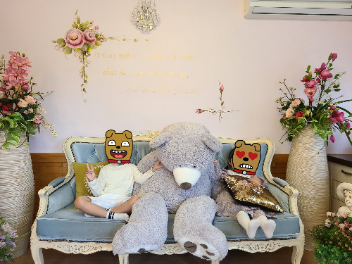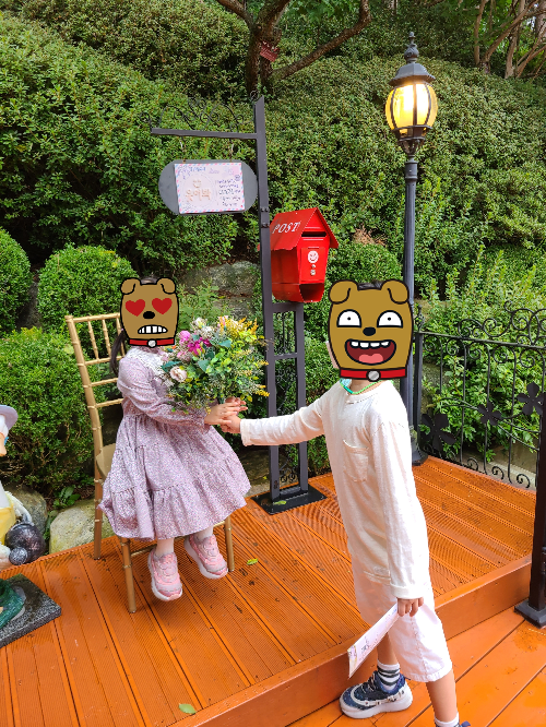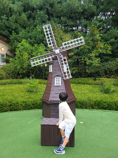 카페 외관부터 마치 유럽의 시골 마을에 온 듯한 분위기를 줍니다. 하얀색 외벽, 둥근 아치형 창문, 목재 루프와 벽돌로 꾸며진 곳들이 사진 찍기 완벽한 배경이에요. 또한 정원에는 빈티지 자동차, 곰인형 포토존, 풍차 구조물, 산책로에 설치된 나무 의자 등 다양한 테마로 꾸며져 있어, 어느 각도에서 찍어도 인생샷 건질 수 있습니다.