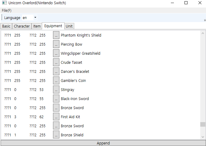 여기도 마찬가지로 Append로 장비아이템을 추가할 수 있습니다. txt파일을 참고해서 원하는 장비를 추가합시다.