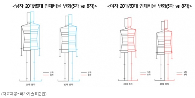 - 한국인의 경우 상체와 하체의 비율을 나타내는 다리 길이 비율이 모든 연령대에서 늘어났습니다.