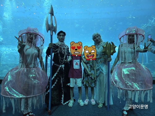 좌 : 빈원더스 아쿠아리움(거북이 건물) 우: 인어쇼 끝나고 캐릭터들과 한컷