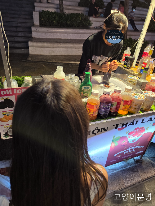 야시장에서 롤아이스크림 초코맛(연유에다가 초코시럽 뿌려서 얼린 건데, 딸이 조금 먹다 맛없다고 나줌), 소시지(얘도 맛이 이상함), 핫도그(이것도 맛없다 함), 반미(그냥저냥)를 먹고 Ziczak이라는 곳에서 밥을 먹었다.