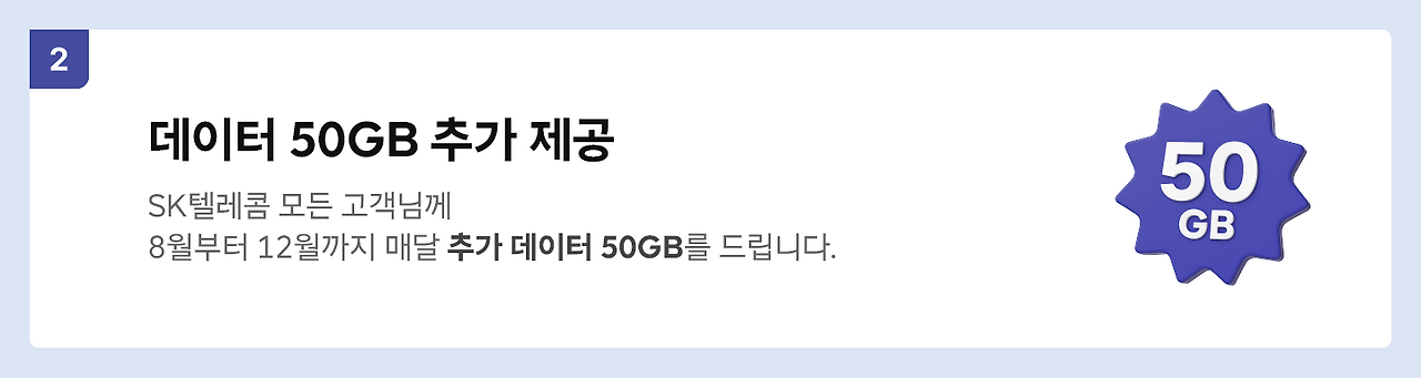 - 혜택: 8월 통신비 할인과 더불어 연말까지 5개월 동안 매월 추가 데이터 50GB가 제공됩니다.